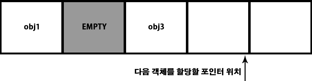 - 쓰레기는 수거되어 메모리상에서 빈공간으로 됨